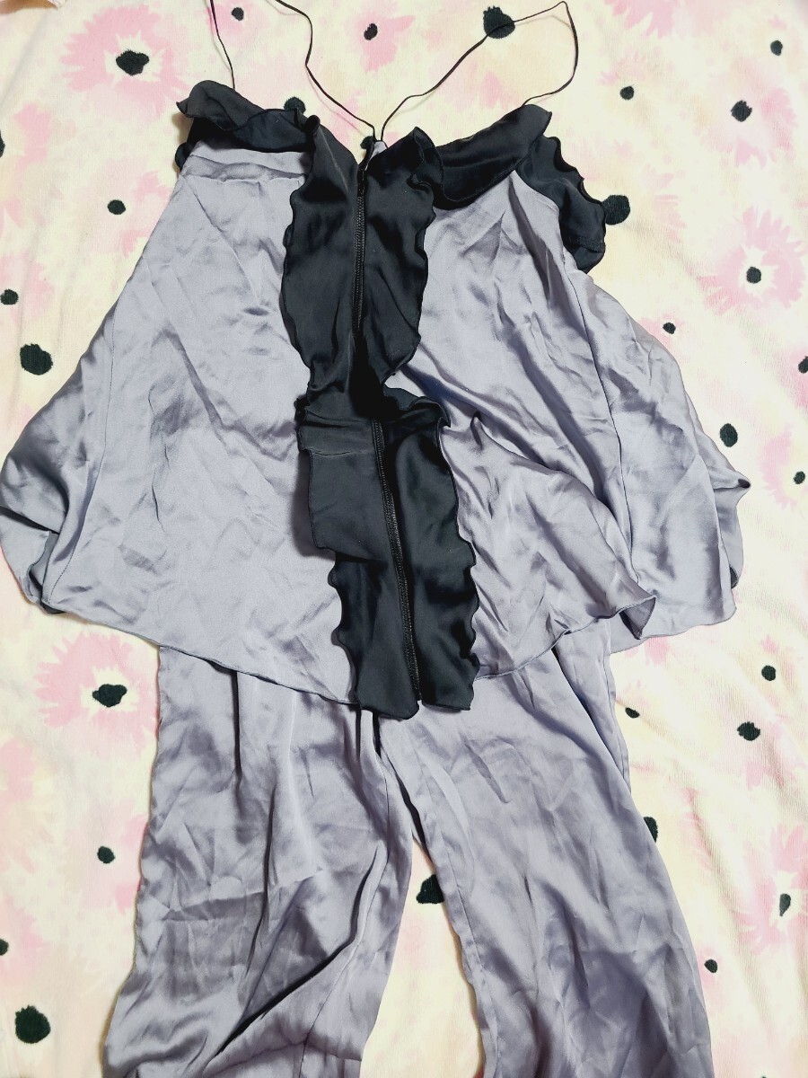 - 【ラヴィジュール】ルームウェア上下セット フリーサイズ グレー サテン ギャル系
