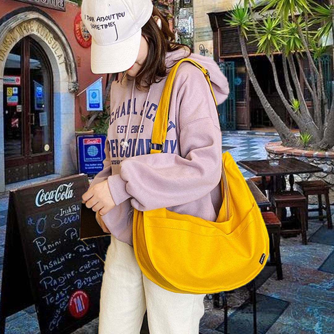 - ◆新品◆ ショルダーバッグ トートバッグ メンズレディース キャンバス ショルダーバッグ 斜め掛け トート 無地 三日月 学生 布製 黄
