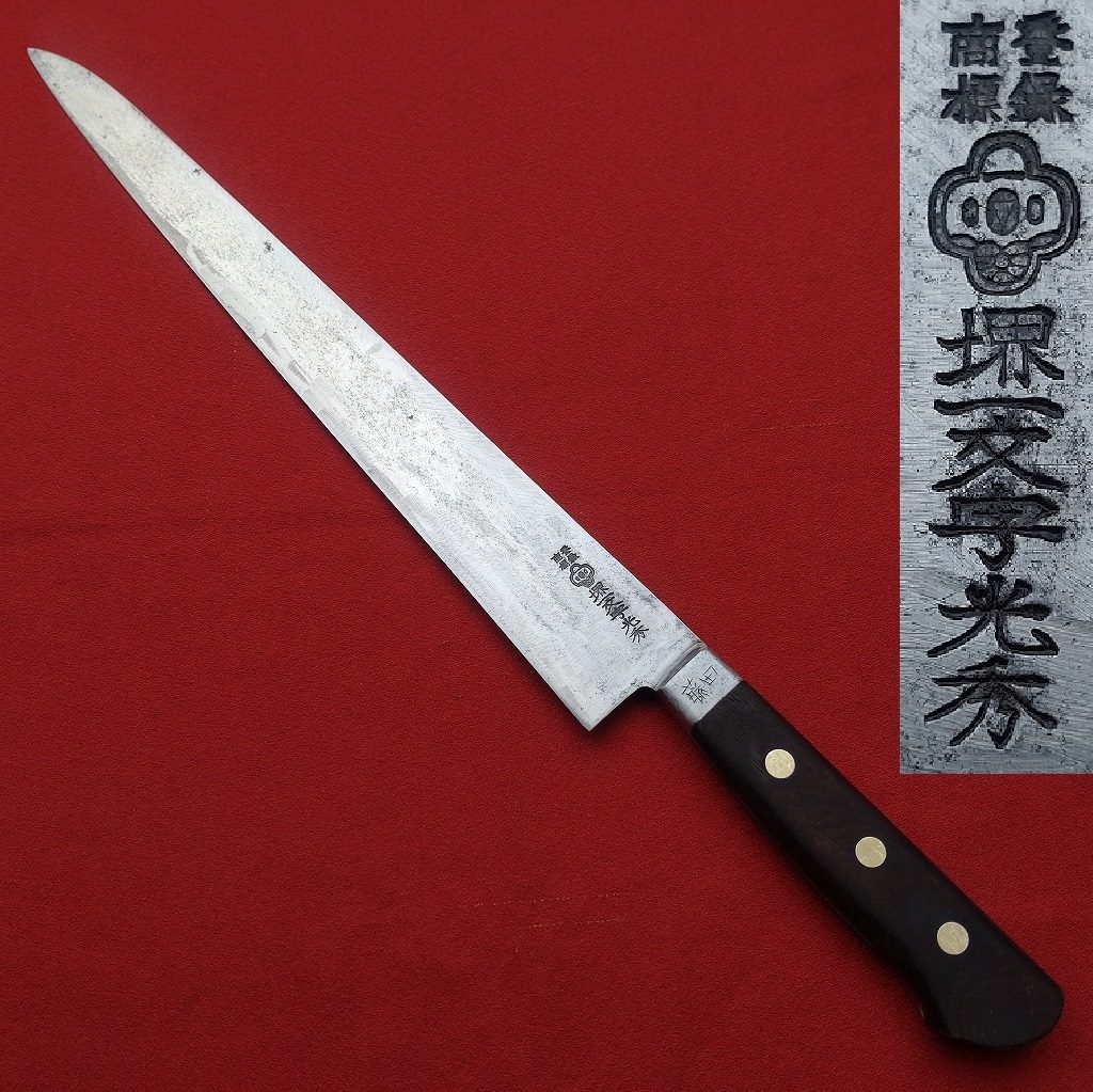 - 牛刀包丁 堺一文字光秀 刃長約330㎜ 刃高約43㎜ 峰厚約2㎜ 重量約235g 両刃 洋包丁 スライサー シェフナイフ 刃物 日本製 【3686】