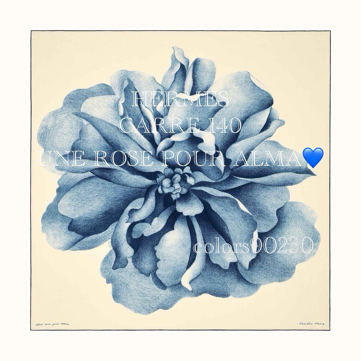 - 完売入手困難!未使用☆ エルメス カレジェアン カシミヤシルク 大判 スカーフ ストール カレ140 カシシル アルマのバラ ホワイト×シエル