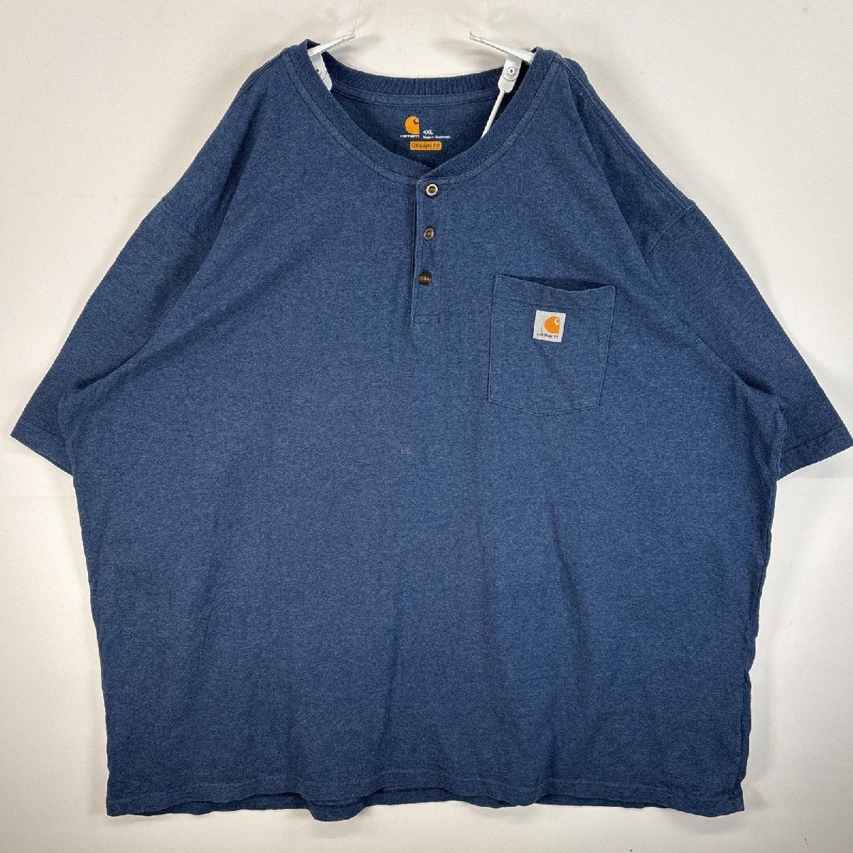 > 古着 カーハート Carhartt 半袖Tシャツ ワンポイント ロゴ 大きいサイズ ヘンリーネック 4XL ブルー系 無地 メンズ