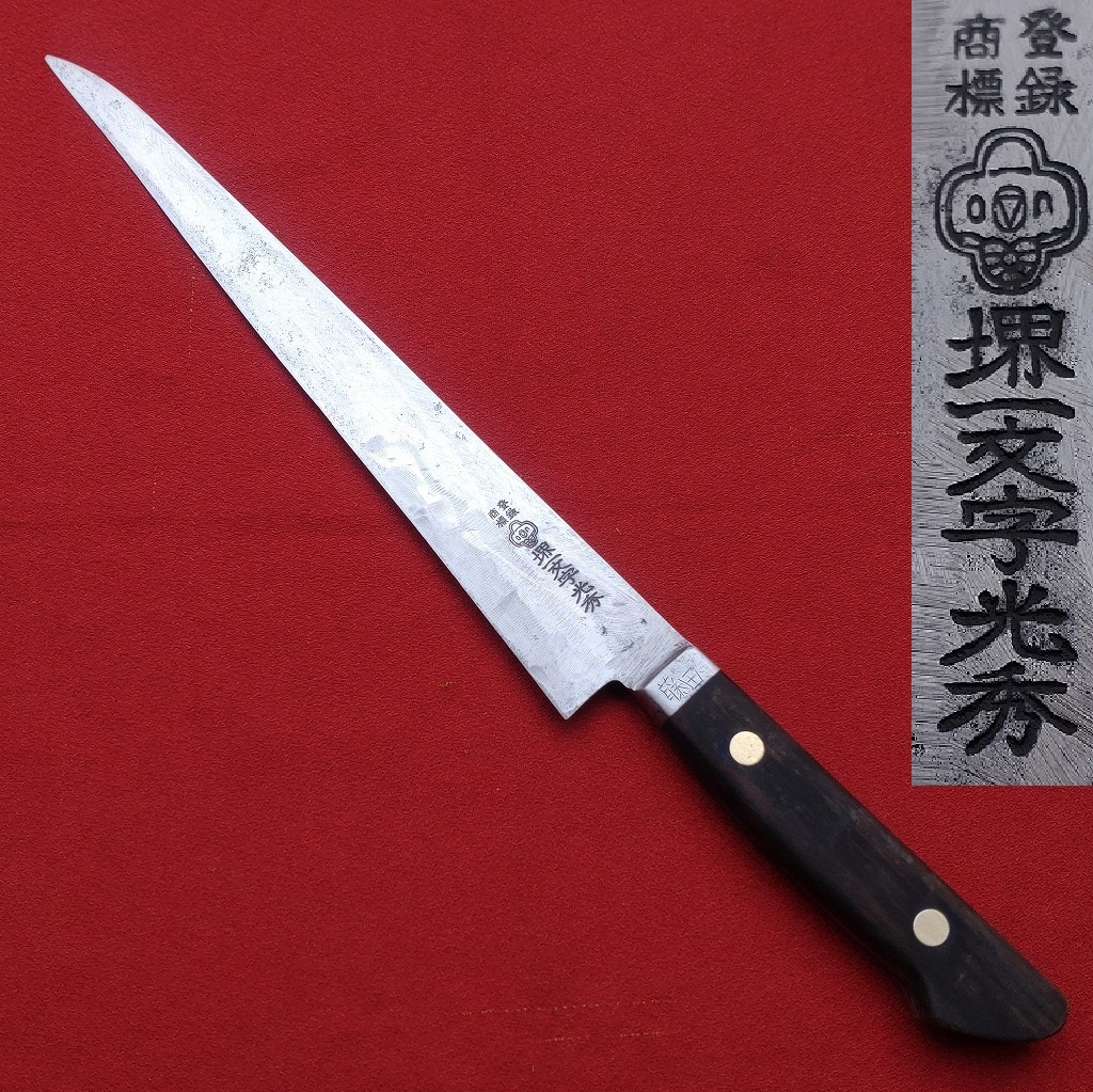 - 牛刀包丁 堺一文字光秀 特上 刃長約242㎜ 刃高約35㎜ 峰厚約1.8㎜ 重量約135g 両刃 洋包丁 スライサー シェフナイフ 刃物 日本製 【3695】