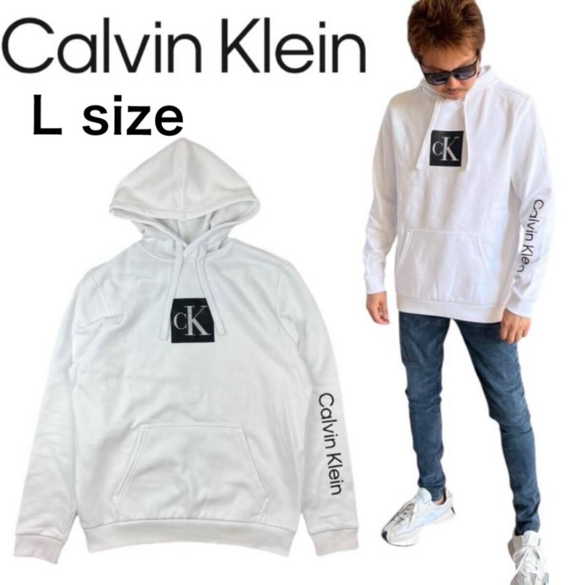 - カルバンクライン パーカー 40QC401 スウェット ホワイト Lサイズ プリントロゴ 裏起毛 CALVIN KLEIN TRAVELING MONOGRAM HW 新品