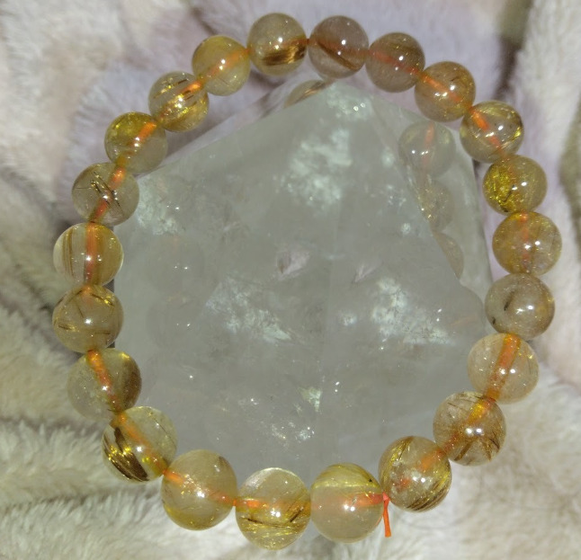 - 黄金天然ゴールドルチルクォーツ ブレスレット パワーストーン原石