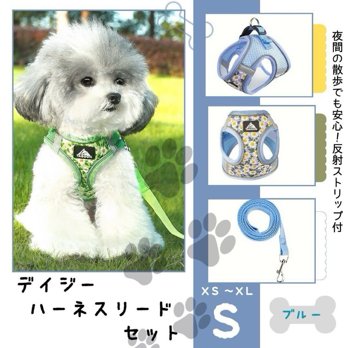 - デイジー ハーネス リード セット ブルー S 散歩 犬用 メッシュ 反射