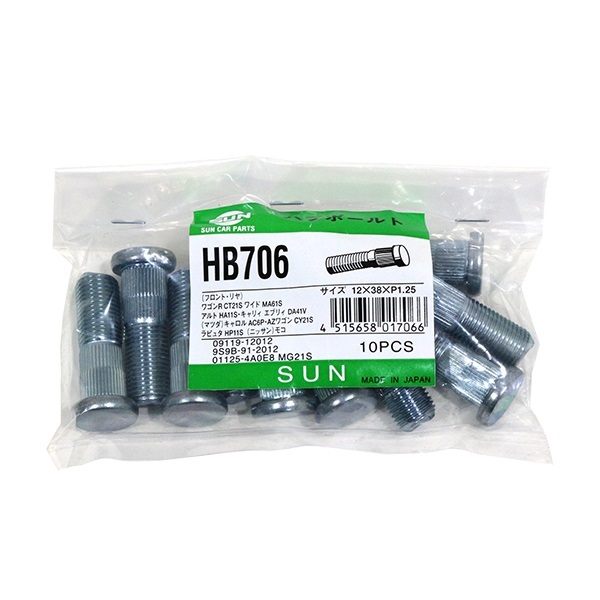 > 【送料無料】 SUN ハブボルト HB706 スズキ キャリィ DA41V 12×38×P1.25×12.3 09119-12012 9S9B-91-2012 01125-4A0E8 MQ500154 交換