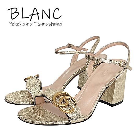 > グッチ GGマーモット ダブルG サンダル #36 1/2 23.0cm メタリックラミネート レザー ゴールド 453379 横浜BLANC
