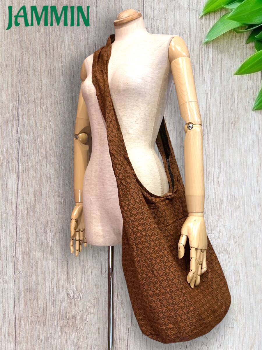 - 麻柄斜め掛けバッグ 麻柄 鞄 アジアン 男女兼用 エスニック 和柄