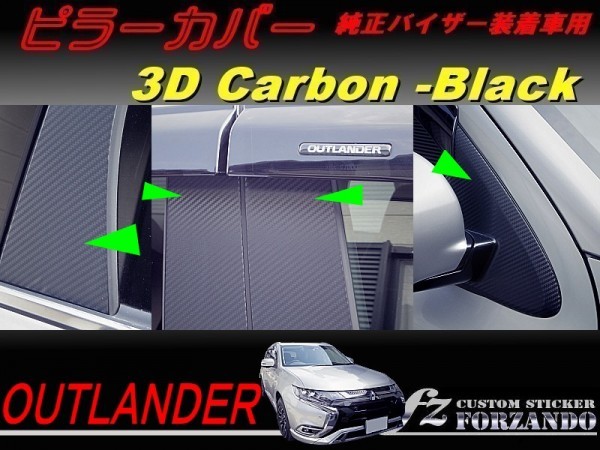 - アウトランダー PHEV ピラーカバー 純正バイザー車 3Dカーボン ブラック 車種別カット済みステッカー専門店 GF7W/8W/GG3W