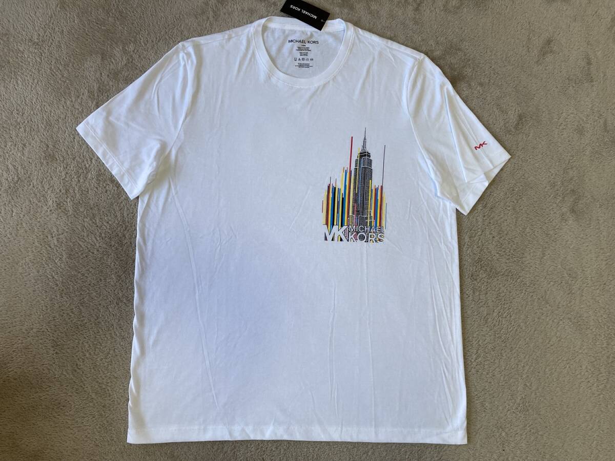 - 新品! マイケルコース メンズ エンパイアステートビル グラフィックロゴ Tシャツ Lサイズ ホワイト 白 半袖 カットソー MICHAEL KORS