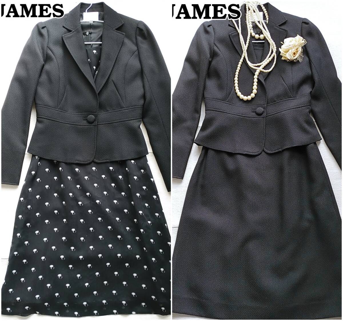- 美品 EMMAJAMES 2ワンピーススーツ 3点セット 黒 レディース7 S 通年 エマジェイムス ママスーツ 25fo-05