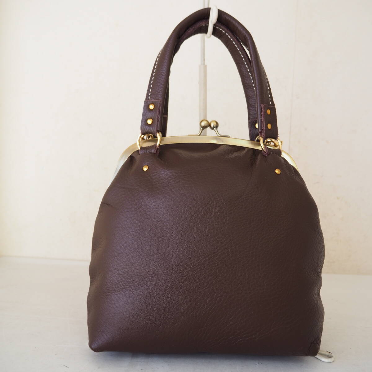 - *美品*がま口*2way*レザー*ハンドバッグ*ブラウン*