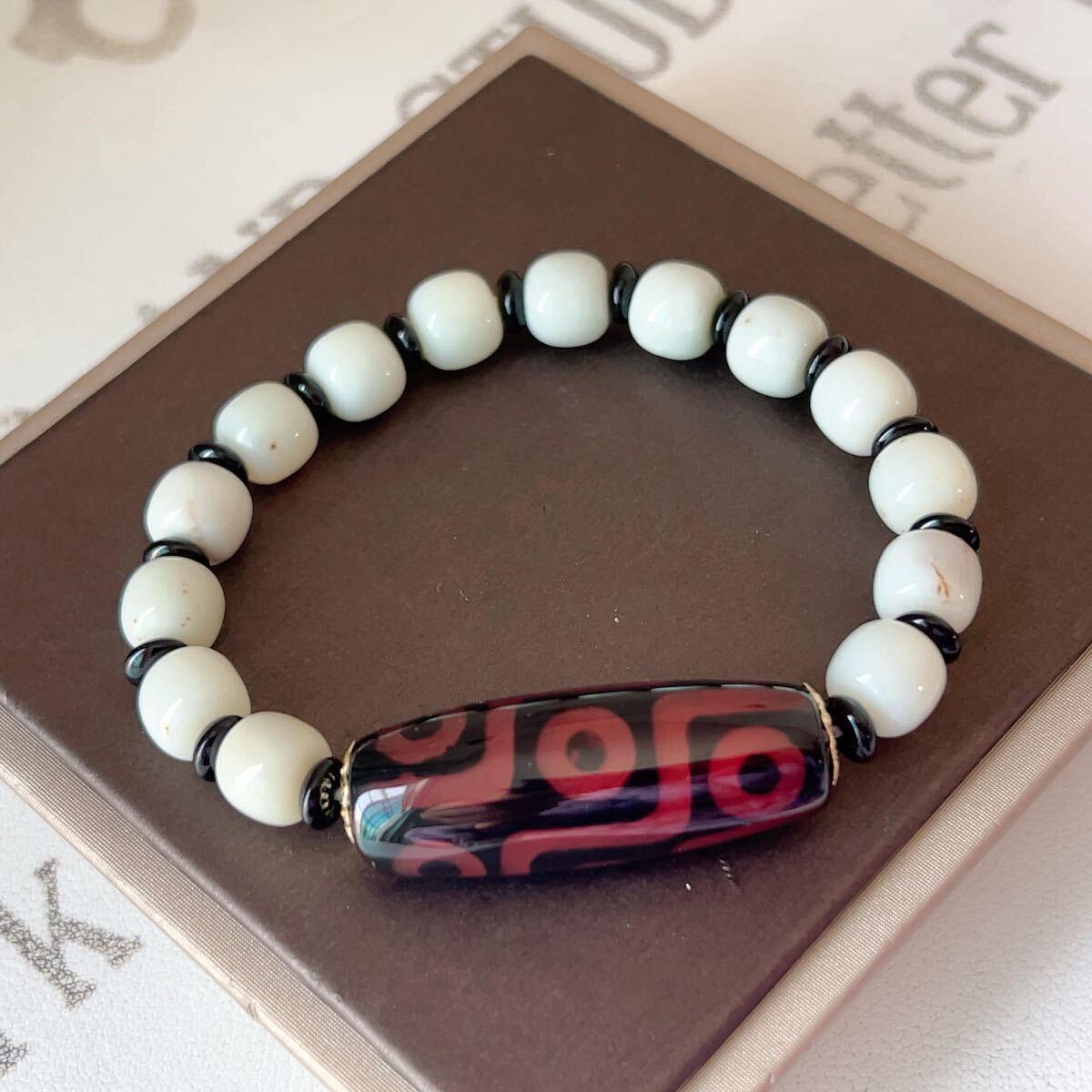 - ◇和田玉+瑪瑙(九目天珠)◇ブレスレット◇パワーストーン◇天然石◇巾着袋付き◇プレゼントにも 032B22712