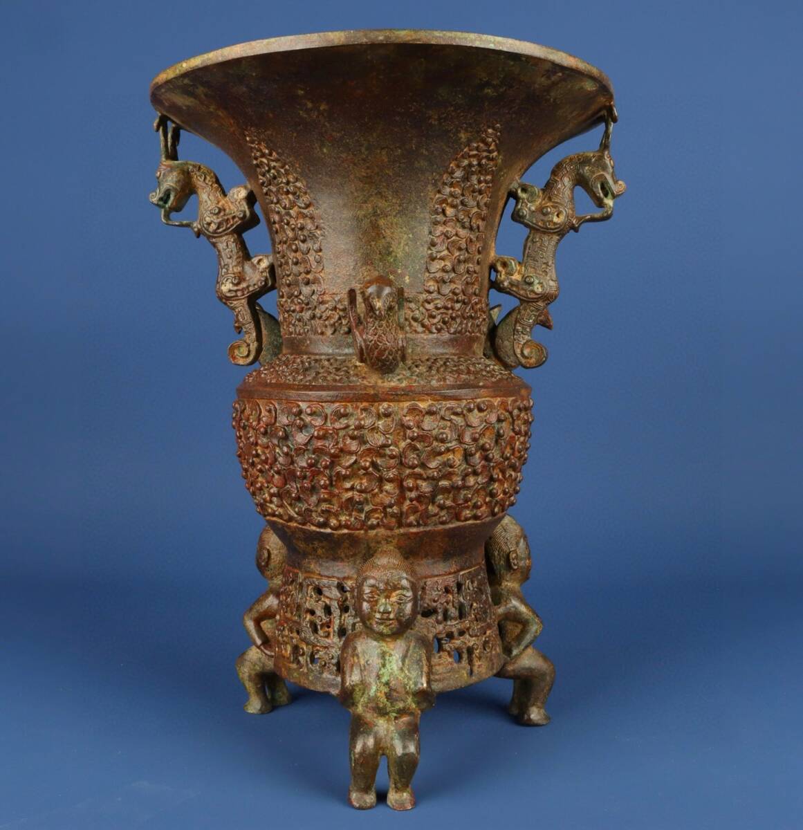 - ▽鴻▽ 西周 青銅製 雙龍圓尊 置物 古賞物 中国古玩 中国古美術