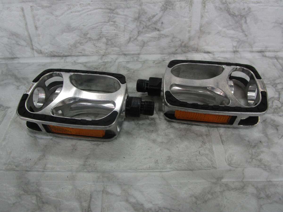 - W.25.B.28 TO ☆ フラットペダル メーカー不明 シルバーカラー×ブラック ペア USED ☆