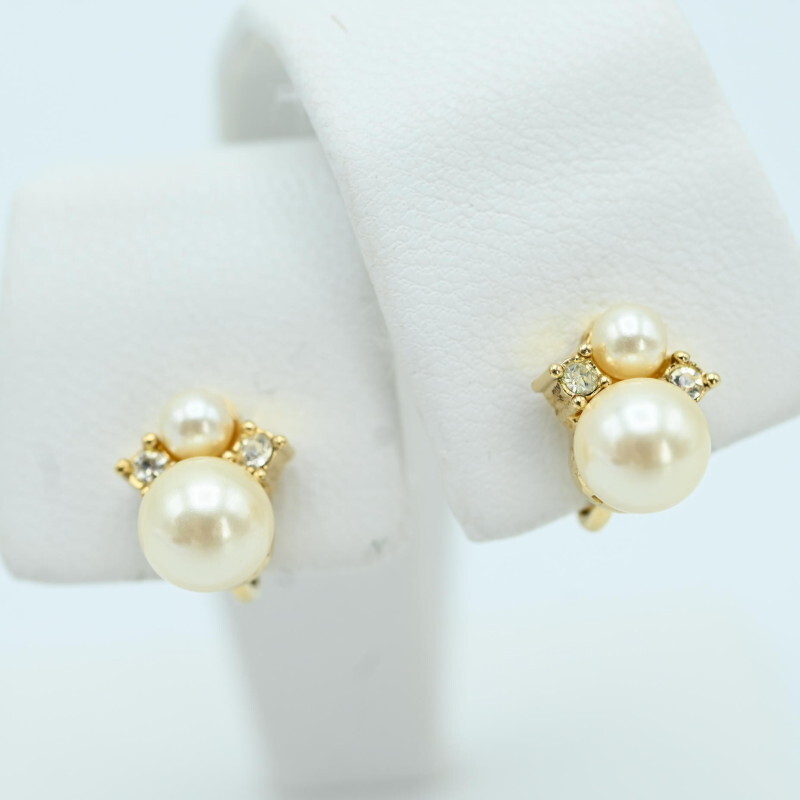 > K02-k099 Christian Dior クリスチャンディオール フェイクパール/ラインストーン GP イヤリング ゴールド