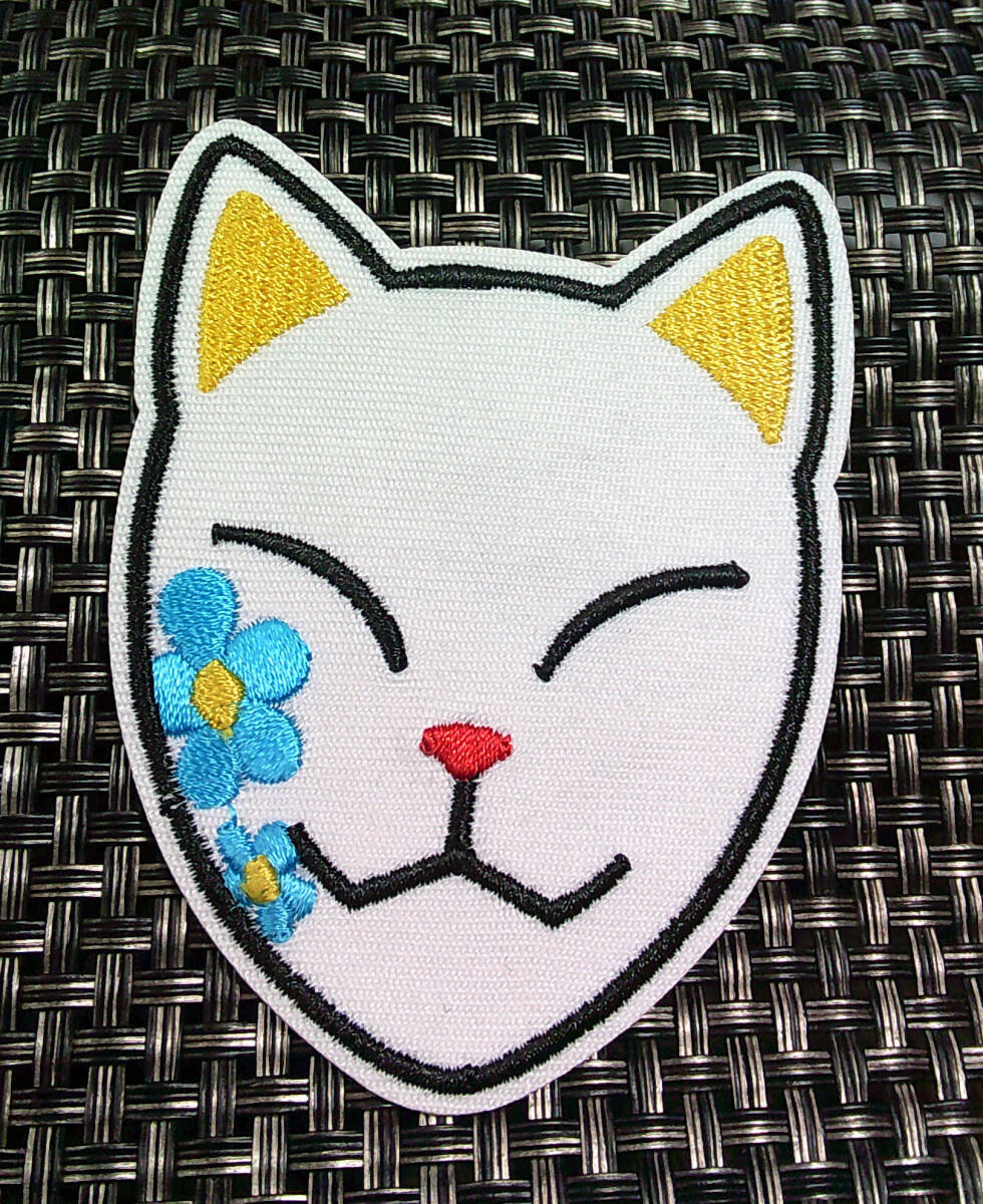 - 《白狐青花柄萌面》 激渋◆日本 お稲荷様 狐 面 刺繍ワッペン(パッチ)◆キツネ きつね ■■洋服・衣類DIY