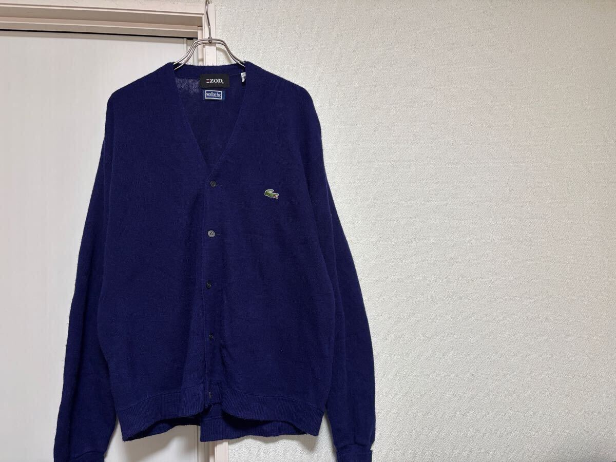 > 90sヴィンテージ USA古着アイゾットラコステwallachsネイビーカーディガンニットsizeXLビッグサイズゆるダボ