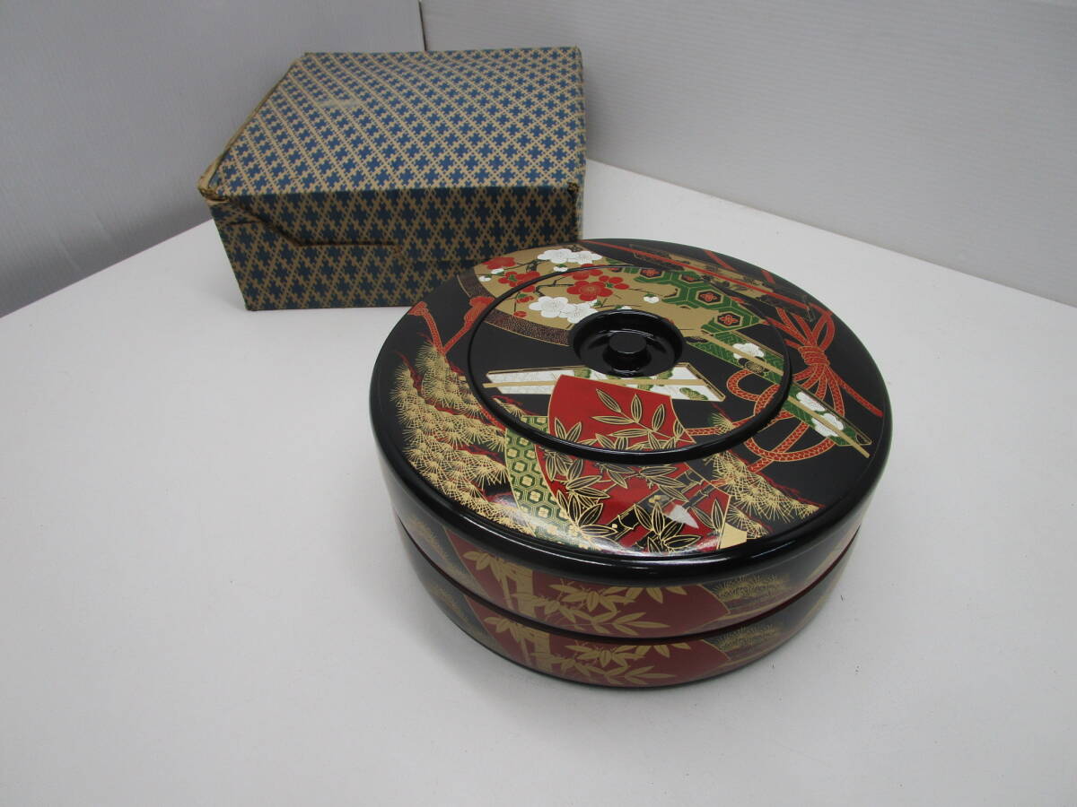 - O784★二段 丸重箱 すし桶 取分け皿付き★未使用品