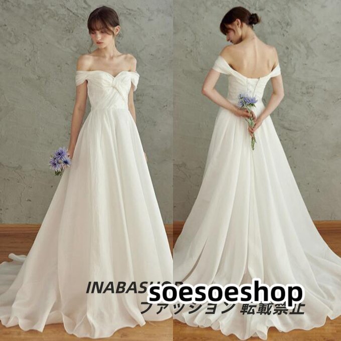 > ウエディングドレス ウェディングドレス トレーンタイプ オフショルダー 編み上げタイプ ウエディングドレス 結婚式 演奏会 海外挙式ドレス