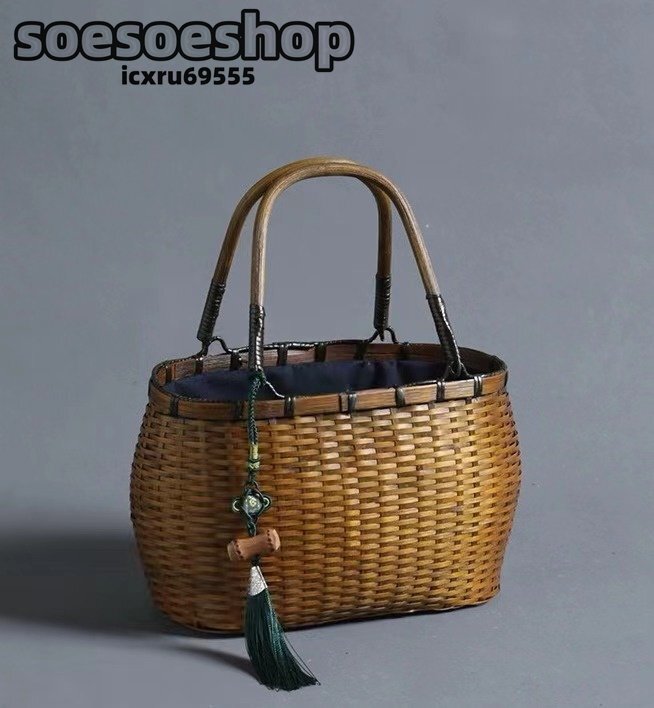 - 自然竹の編み上げ 手編み かごバック レディース 網代バッグ トートバッグ 籠 バッグ 内布付き ハンドメイド 竹編持手
