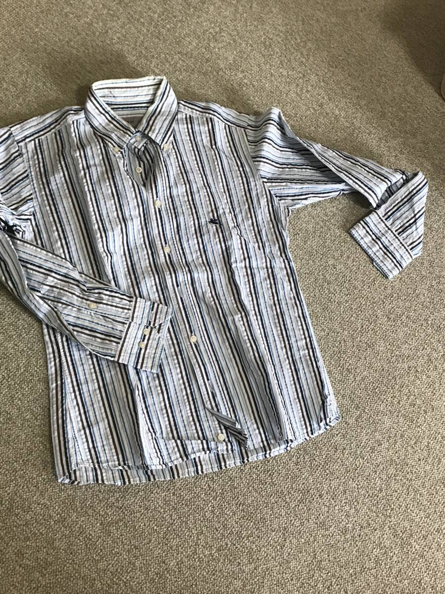 - ETRO エトロ ブルー系 マルチストライプ プリーツドレスシャツ シルバータグ