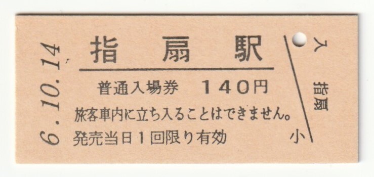 - 平成6年10月14日 川越線 指扇駅 140円硬券普通入場券(日付印刷)
