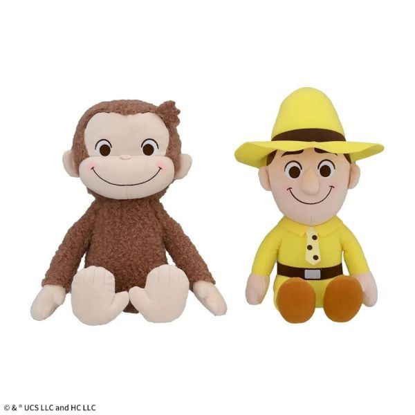 - 全2種セット【ジョージ&黄色い帽子のおじさん】おさるのジョージ 赤いほっぺ L ぬいぐるみ 座高約35cm 新品タグ付き ぬいぐるみ ZK2