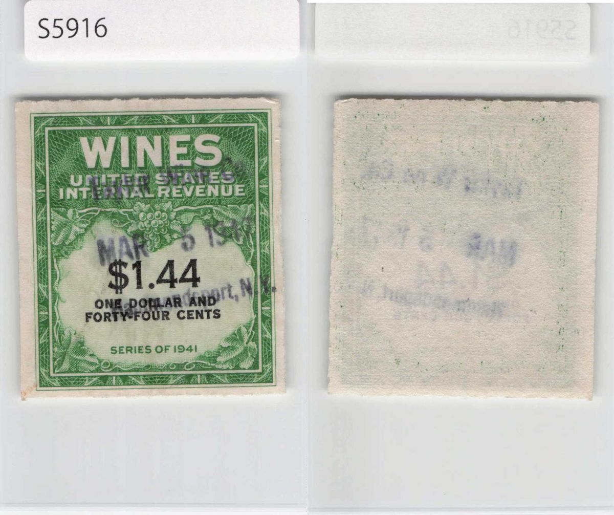 - *[令]アメリカ収入印紙 ワイン印紙 $1.44(1941)切手、収入証紙、米国[S5916]7d7