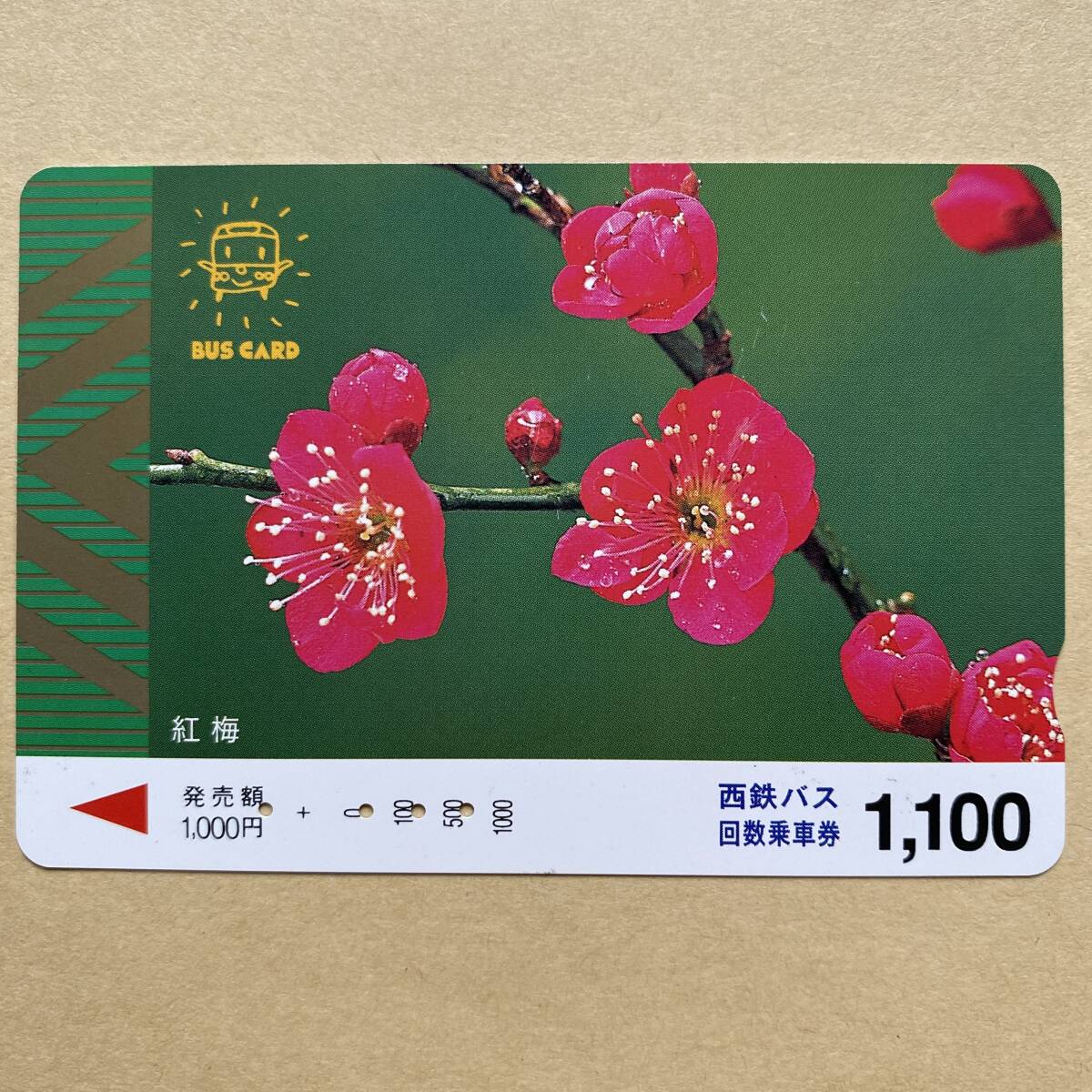 - 【使用済】 花バスカード 西鉄バス 紅梅