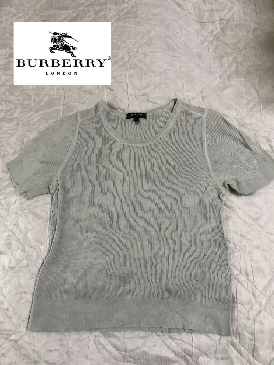 - バーバリーロンドン 薄水色シルク100%半袖丸襟ニットカットソー 4 t186