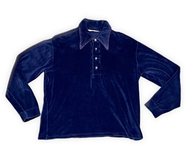 > 70’s 80's 米国製 タウンクラフト TOWNCRAFT JC Penney オールドサーフ プルオーバー ベロアシャツ ネイビー L [la-1198]