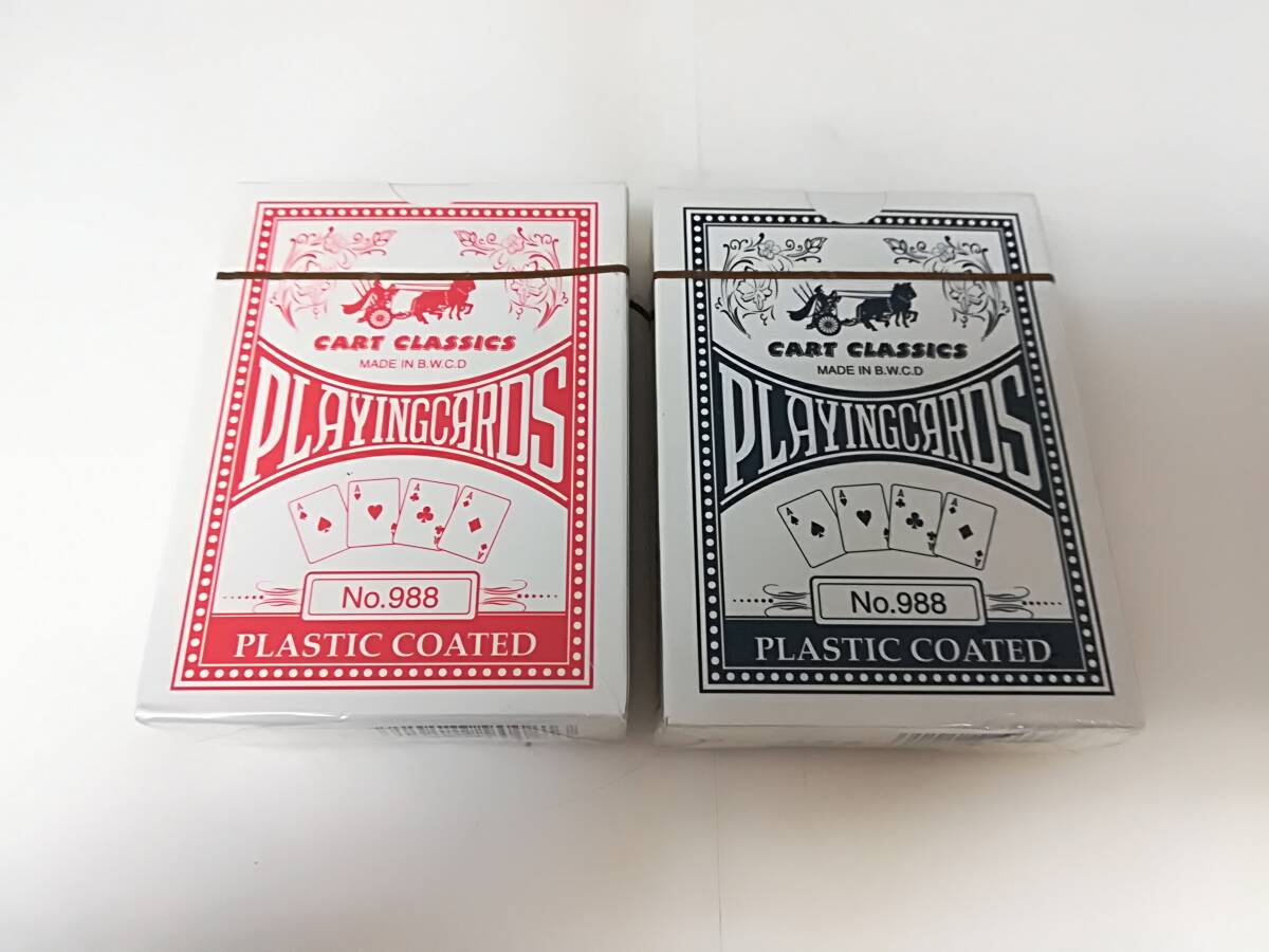 - ■未使用 トランプ CART CLASSICS MADE IN B.W.C.D PLAYINGCARDS No.988 プラスチック コーテッド 赤・青 未開封 2種セット