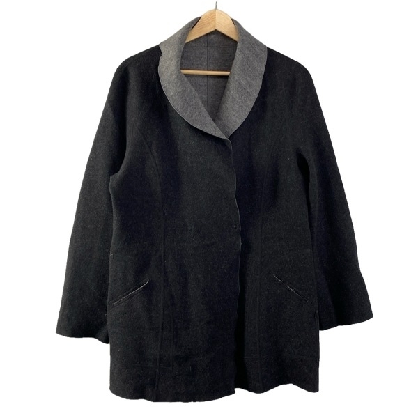 > ハナエモリ HANAE MORI サイズ40 M - 黒×グレー レディース 長袖/リバーシブル/ベルト付属なし/春/秋 コート