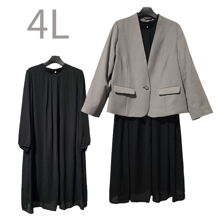 - ●新品/スーツ/2点/ノーカラー/ジャケット/ワンピース/4L/セットアップ/レディース●&1382