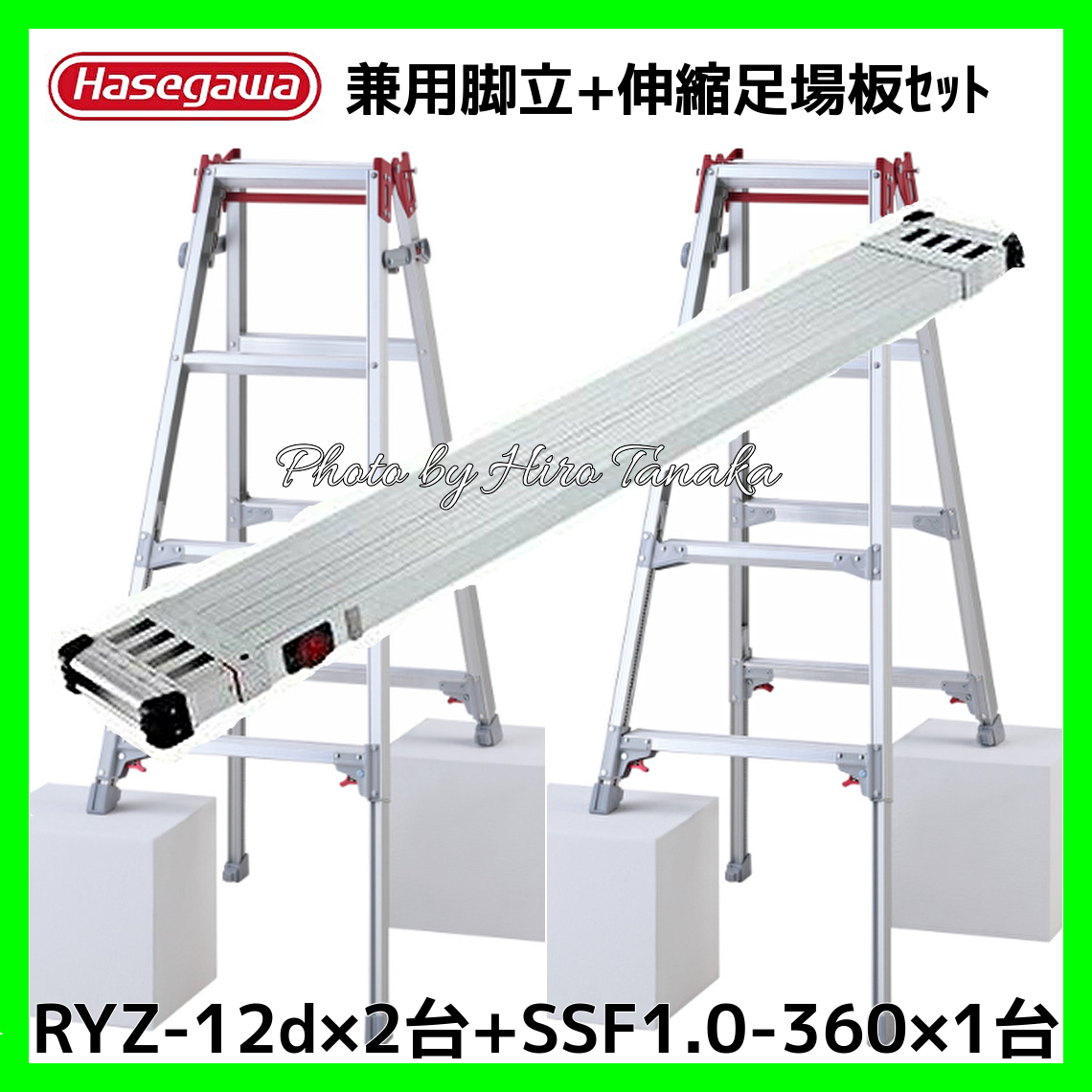 > ハセガワ アルミ はしご兼用脚立 脚部伸縮 4尺 RYZ-12d×2台 +伸縮足場板SSF1.0-360×1台 高所作業 長谷川工業 Hasegawa 個人宅配送不可