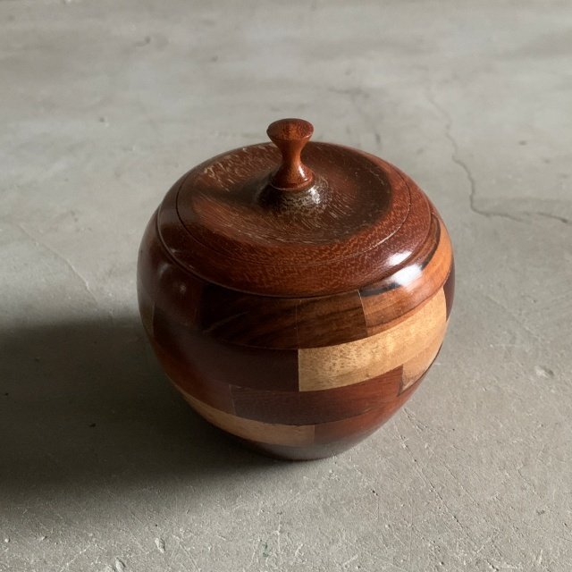 > 【9.4㎝】UNKNOWN 蓋付き ウッドボックス 寄木細工■ビンテージ アンティーク アメリカ雑貨 インテリア 木製 小物入れ リンゴモチーフ