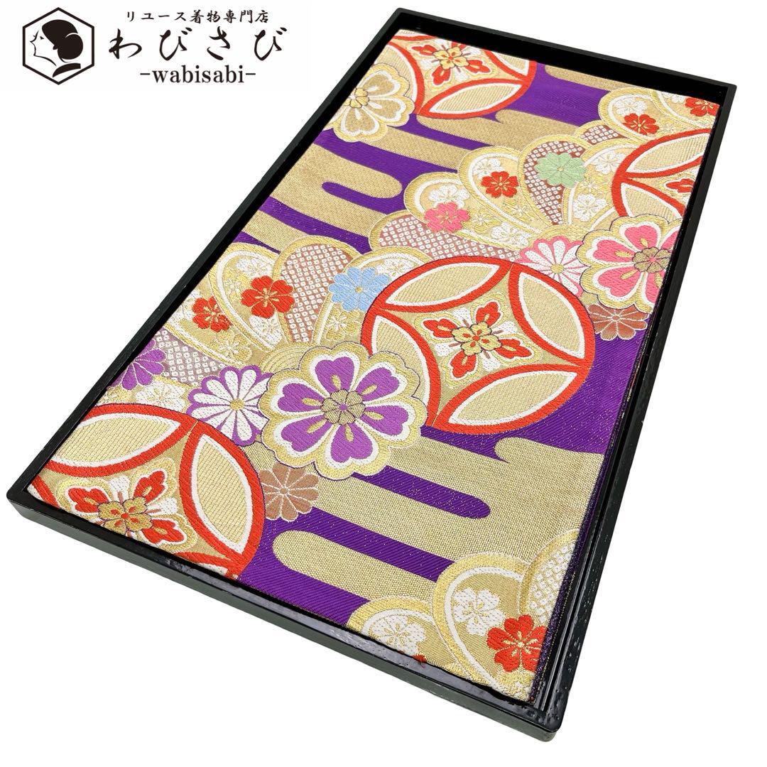 > 袋帯 七宝に花柄模様 エ霞 本紫色 金糸 振袖 O-4770 着物 きもの kimono 和服 和装 中古 リサイクル着物 【送料無料】