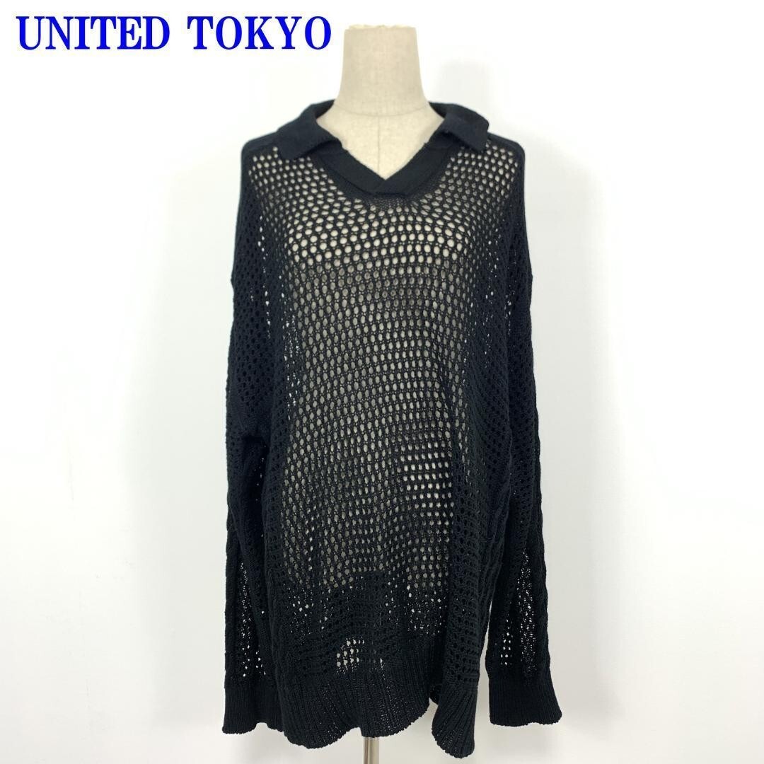> UNITED TOKYO かぎ編みニット 黒 綿 ユナイテッドトウキョウ ブラック メッシュニット コットン100%ロング 2 C2184