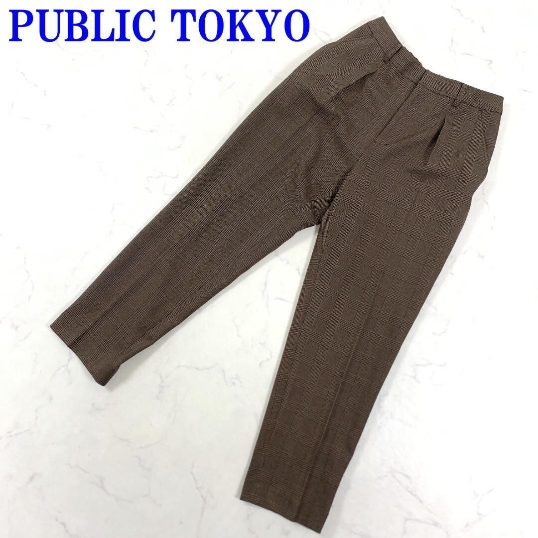- PUBLIC TOKYO パンツ 茶色 ポリエステル チェックパブリックウキョウ ブラウン系 テーパード タック入り 千鳥柄 2 C2239
