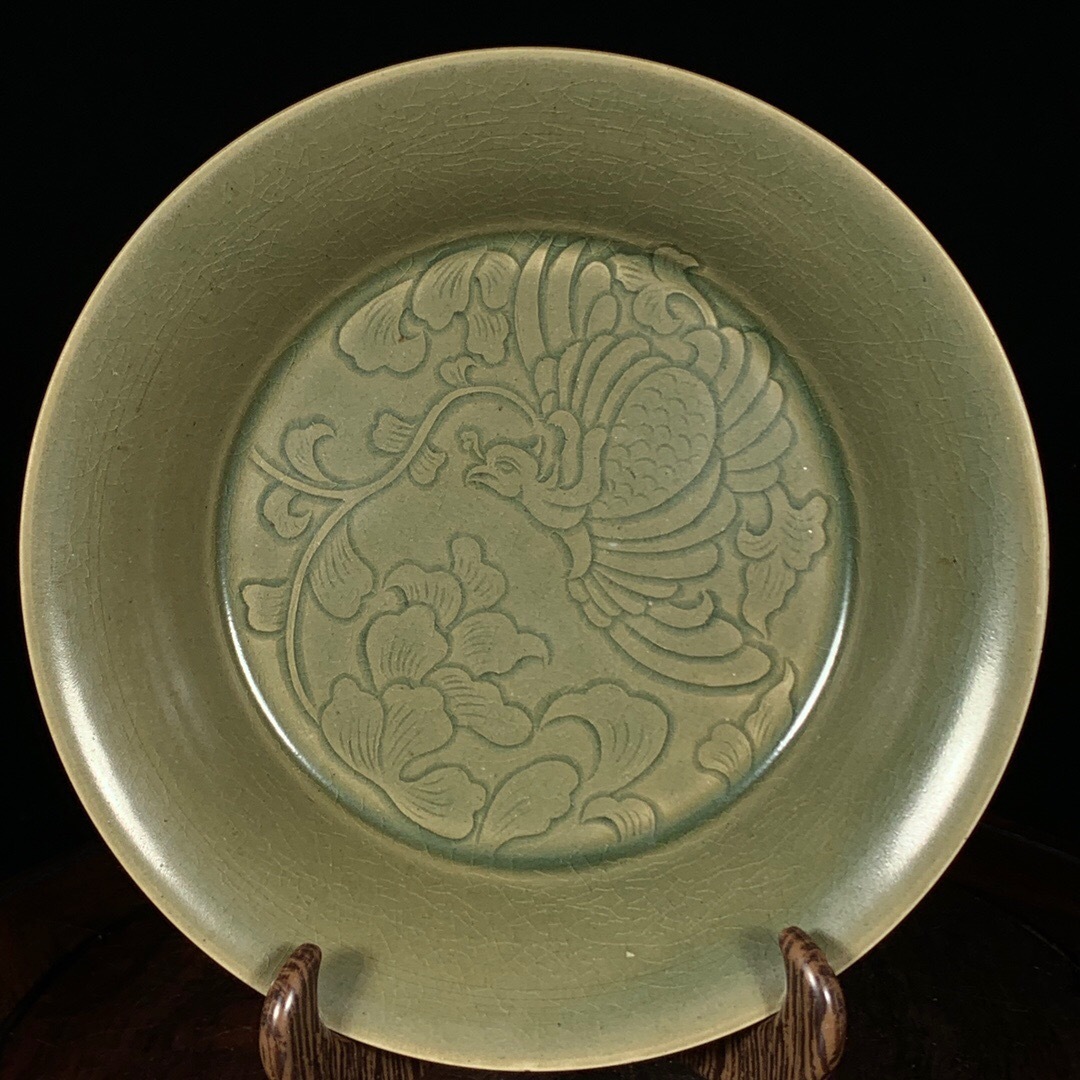 - ▽鴻▽ 唐 越窯 鳳紋 折沿盤 古陶瓷品 置物 古賞物 中国古玩 中国古美術