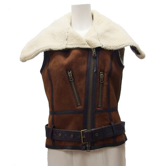> ラルフローレン ライダースベスト ムートンベスト レザーベルト付き Mサイズ[20250228]