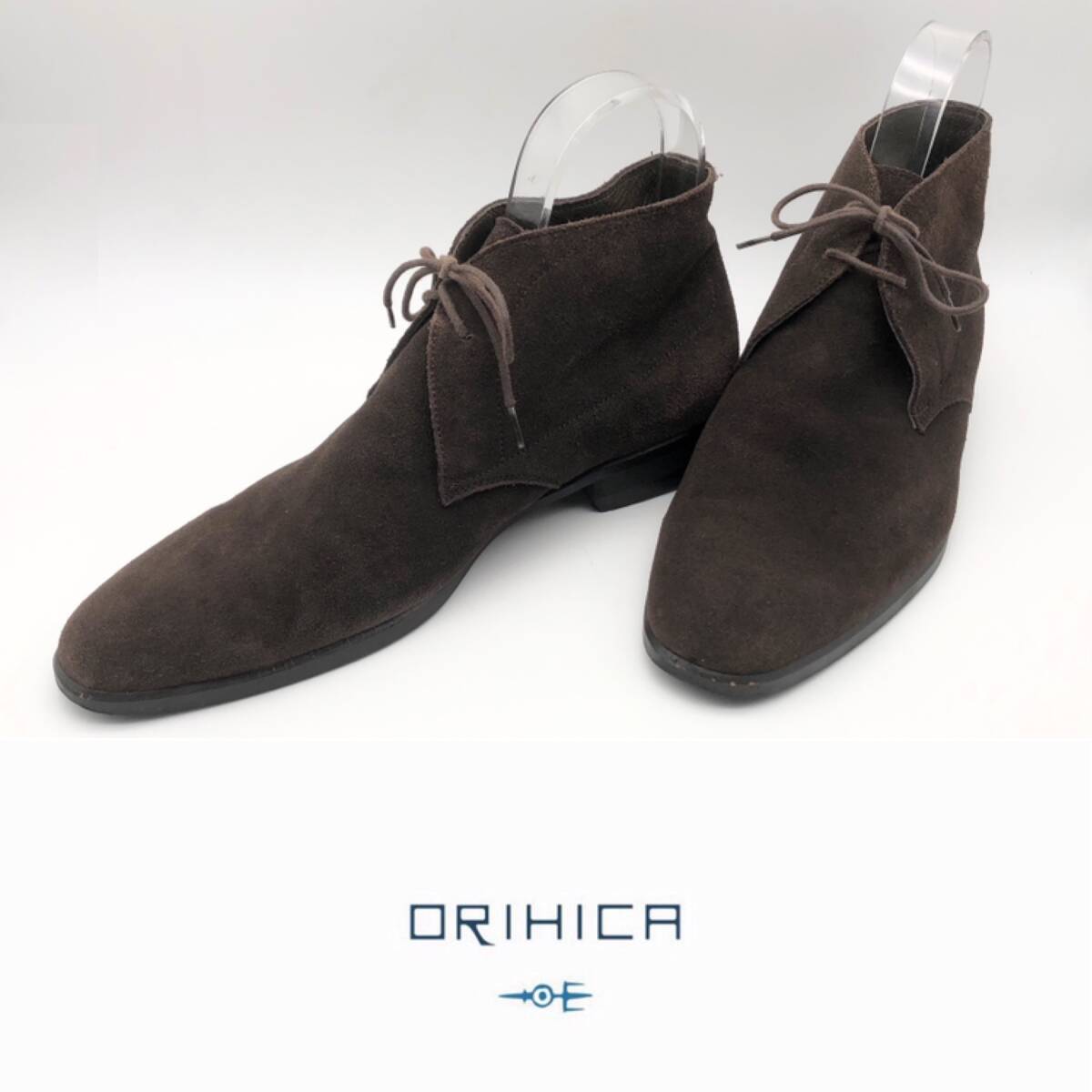 - ORIHICA オリヒカ 09 レースシューズ ビジネス オフィス デザートブーツ チャッカブーツ スエード ダークブラウン 革靴 26.5cm USED