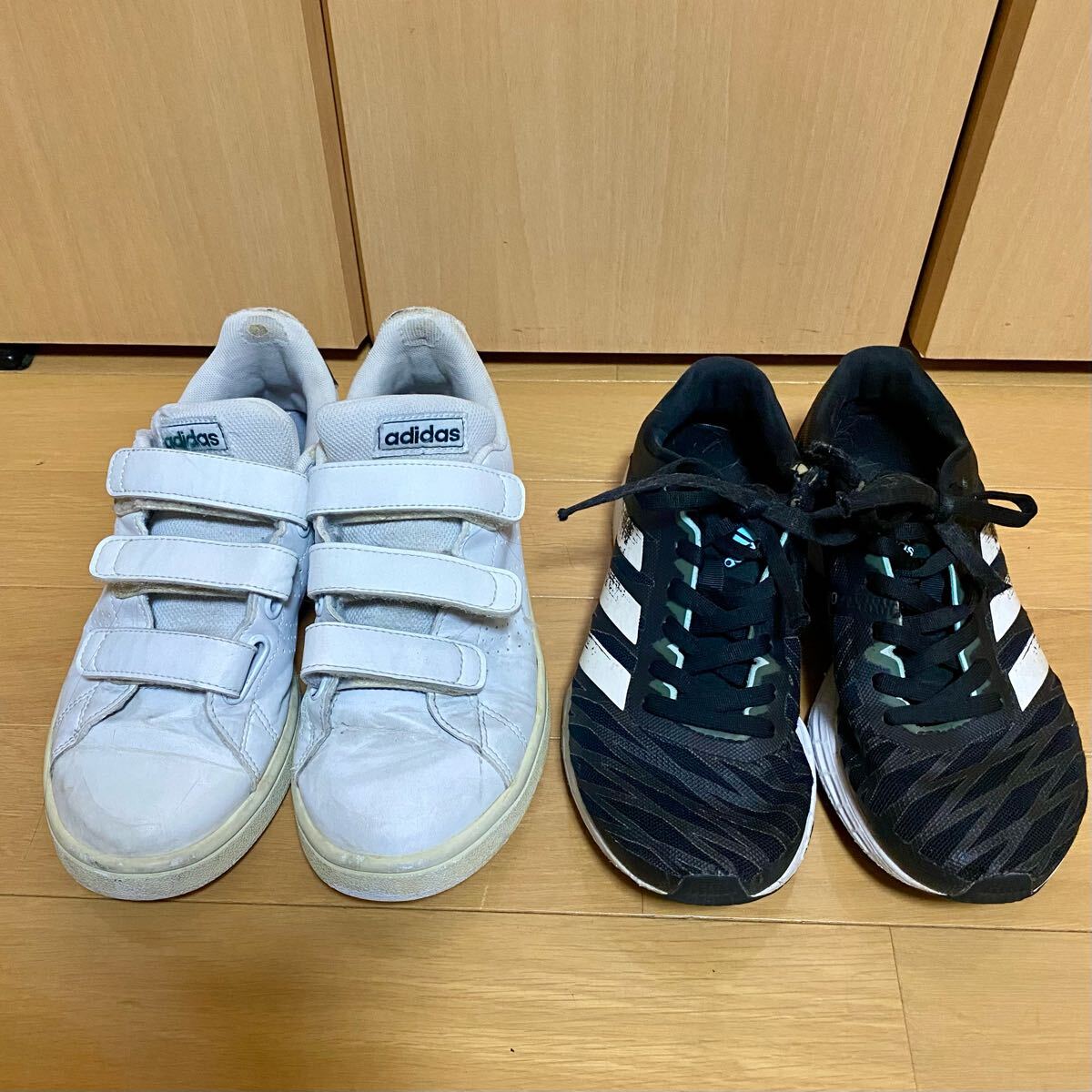 > 中古 2足まとめて アディダス adidas スニーカー レディース 23.5cm ベルクロ 紐 黒 白 傷み強め