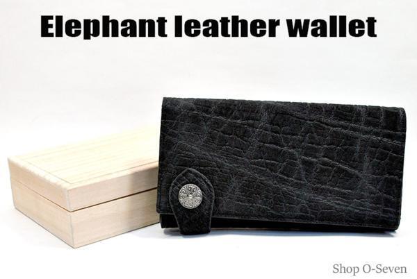 - 送料全国¥600- ★高級素材 エレファント(象革)ラウンド 長財布 桐箱入(ブラック)コンチョ付き