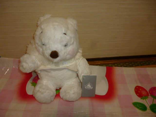 > ディズニーストア限定 くまのプーさん パーカーを着たホワイトぬいぐるみ PLUSH タグ付き 定価3000円