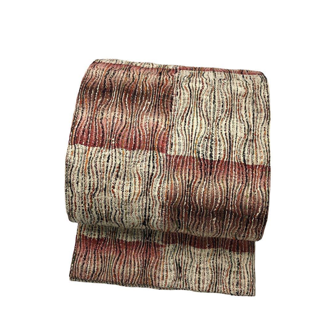 - 名古屋帯 真綿紬 四角模様 縦柄よれ縞織模様 O-4784 着物 きもの kimono 和服 和装 中古 リサイクル着物 【送料無料】