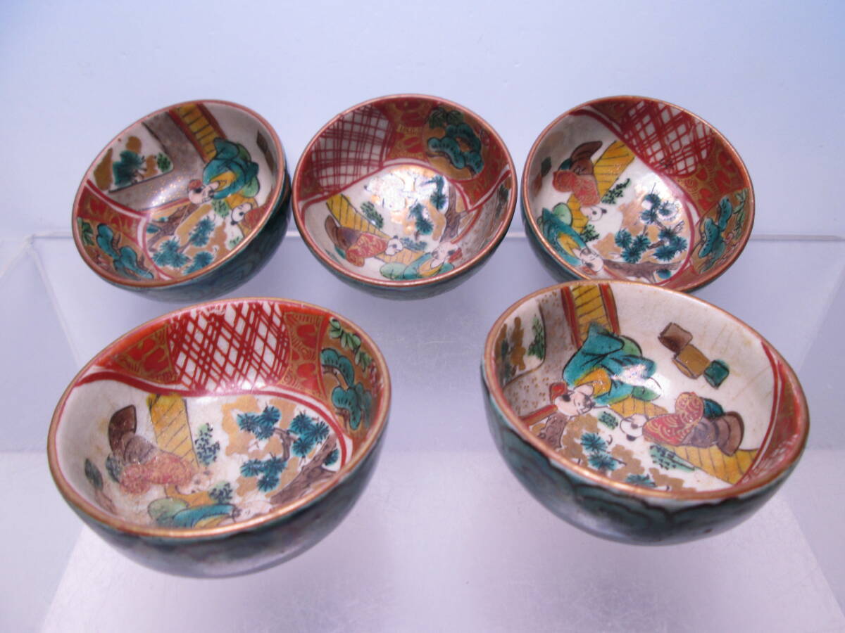 > ☆お料理屋さんの器 九谷 庄三 金彩色絵 人物文 酒盃 五客 酒器/酒杯/小鉢/懐石/割烹/日本料理
