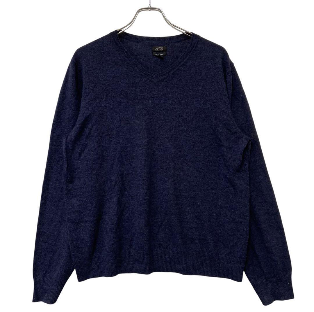 - アプト9 レディースニット 紺 XL メリノウール混 シンプル 秋冬【463】