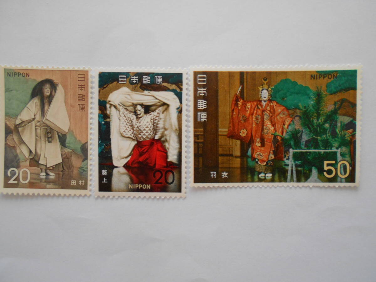- 古典芸能シリーズ 能3種(田村・葵上・羽衣)未使用20円50円切手